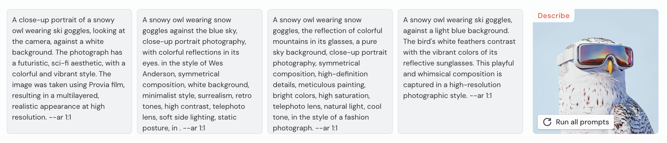 If you can't find the right words to turn an image into a prompt, you can now use the describe feature on the web! To use it, right click on any image and select "Describe," or drag an image from your desktop to the describe zone. You'll see four text prompts generated from the image at the top of your Create page. To keep your creation feed clean, these prompts will disappear once you refresh the page.
