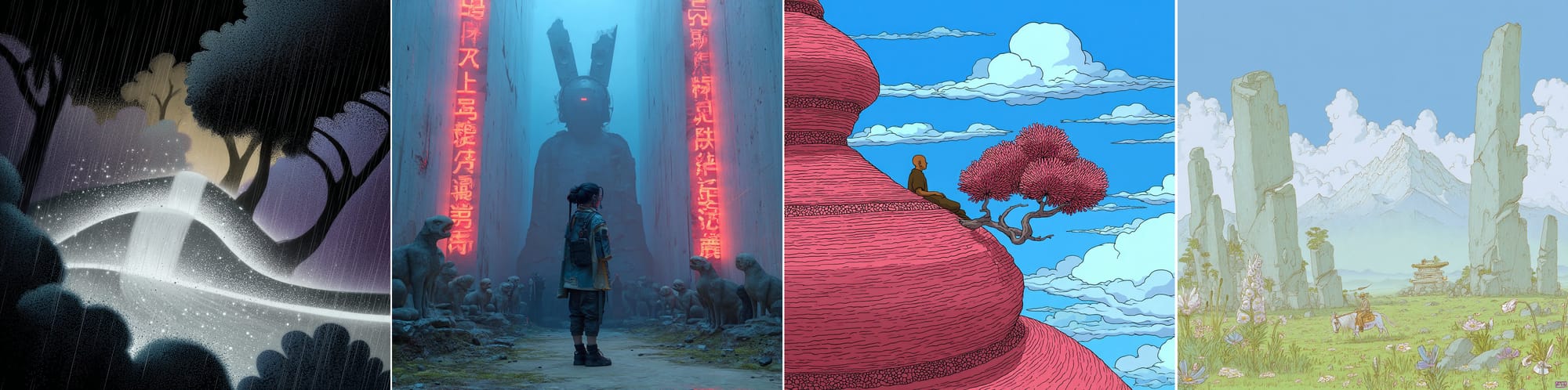 --weirdcommand back to V7. It mainly goes from 0 to 1000 but we're allowing 3000 like before. The main goal is to give you a command that lets you push things out of the normal aesthetic window into stuff that might be novel or weird in ways you might desire. Try using it with high values of--stylize!